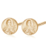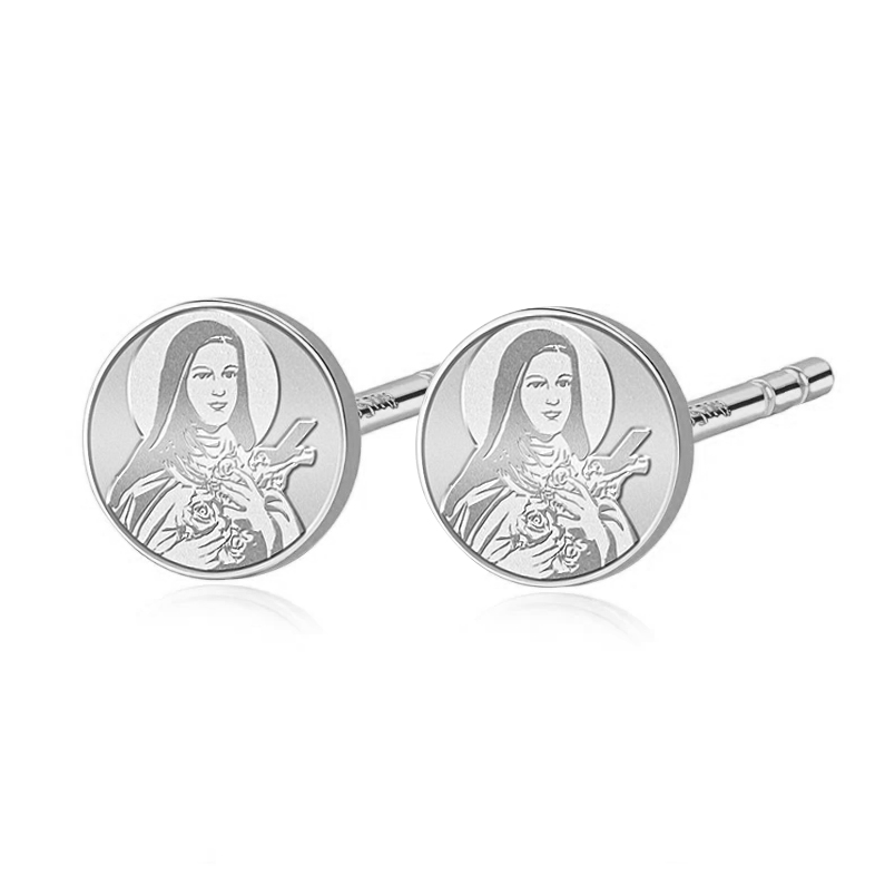 This pair of high polished saint earrings is available in Solid .925 Sterling Silver, Gold Plated, or Solid 14k Gold