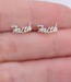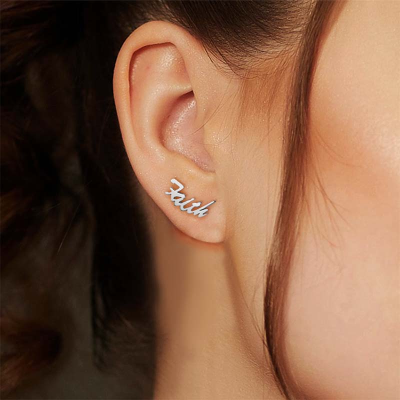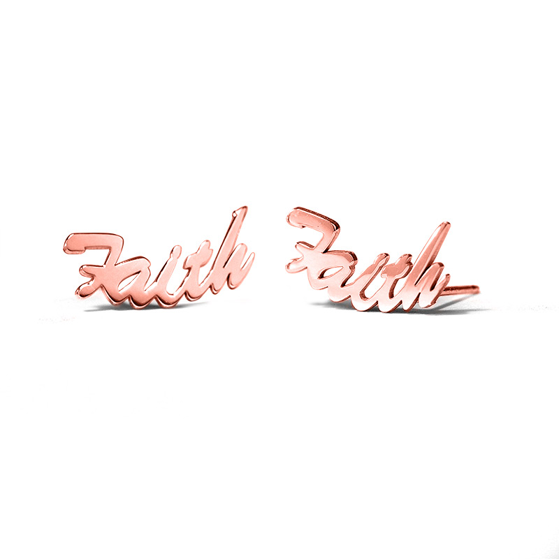 This pair of high polished script "Love" earrings is available in Solid .925 Sterling Silver, Gold Plated, rose gold plated or Solid 14k Gold