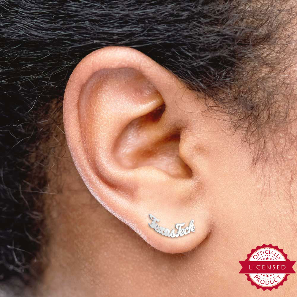 This pair of Texas Tech earrings is available in Stainless Steel, Solid .925 Sterling Silver, Black Sterling Silver, Gold Plated, Rose Gold Plated or Solid 14k Gold. Each earring measures 18mm in width which is 3/4 inches wide. They are made to fit perfectly on a female or child's ear