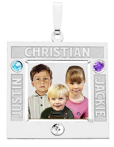 A:  Color Laser: Your photo in full color permanently lasered onto your charm. This process being the most detailed. We´ve had customers say, "My pendant actually looks better than the photo." A protective jewelry enamel is added to every "color laser" pendant to ensure that every day your charm will look as beautiful as the day you took it out of the box.