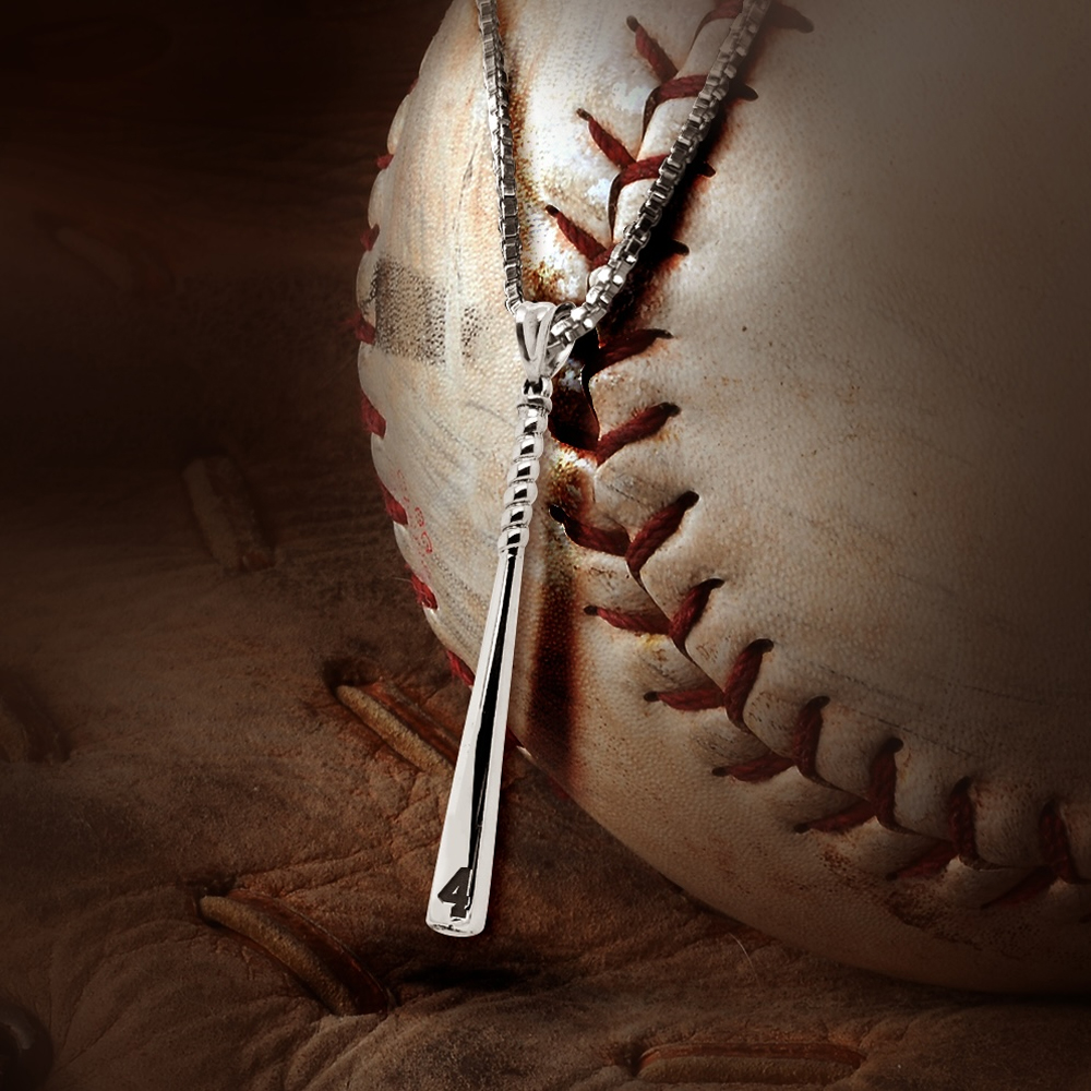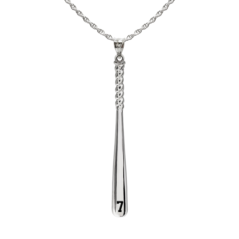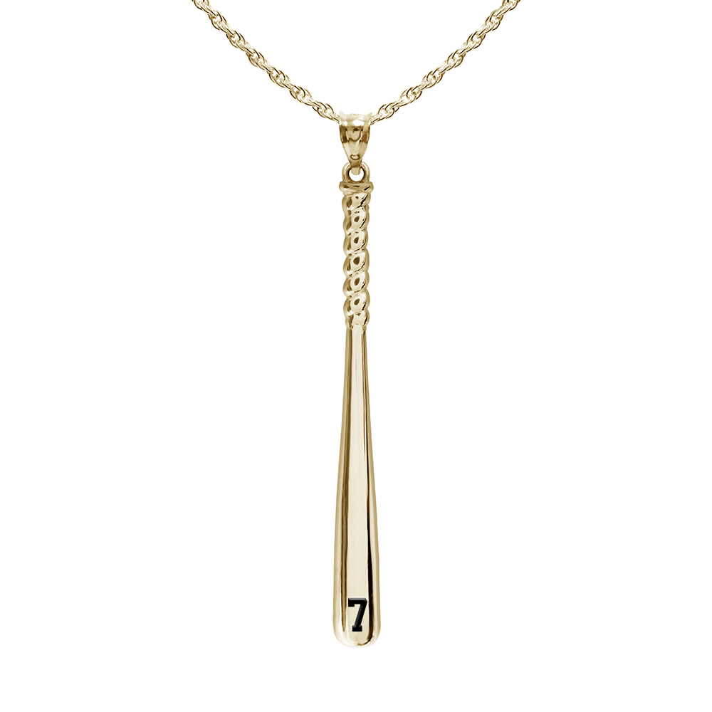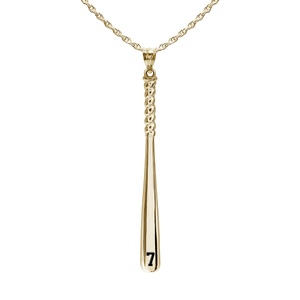 Wear your players number proud with this new personalized 3D Baseball Bat Necklace available in Sterling Silver or Gold over Sterling Silver. This bat pendant can be personalized with your favorite players number or left plain.