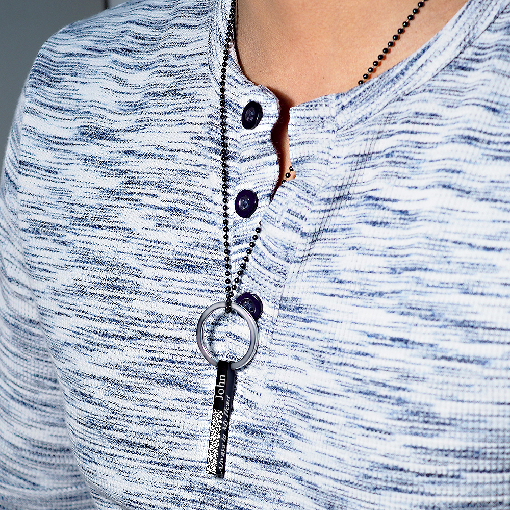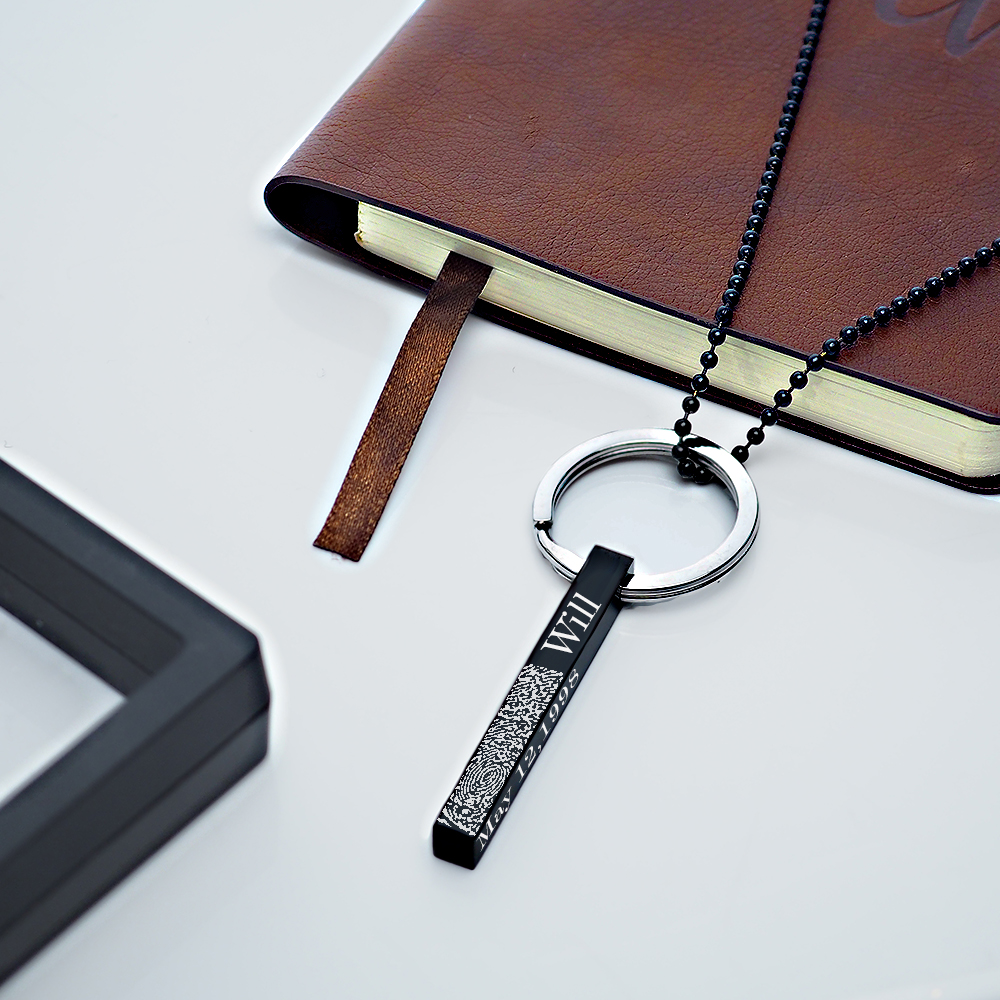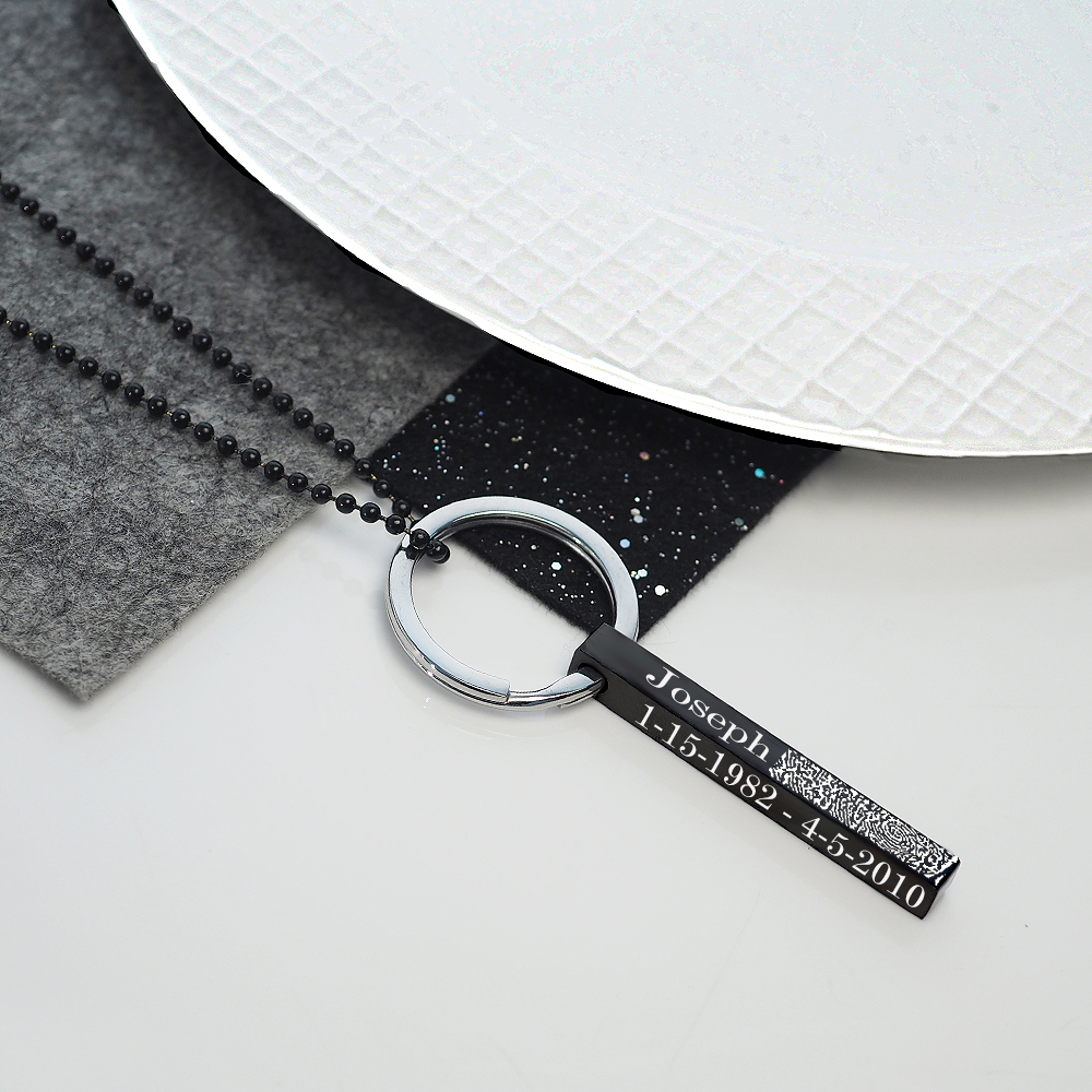 Personalized Black Stainless Steel Fingerprint Vertical 3D Bar Necklace