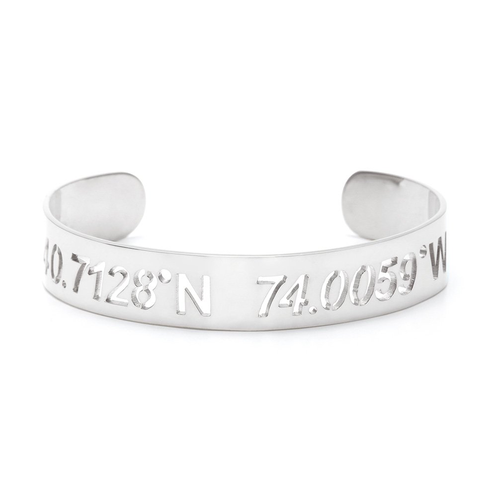 Personalized Coordinate Cut Out Cuff Bracelet
