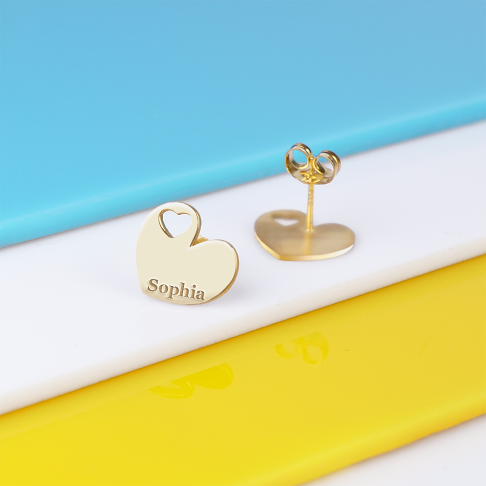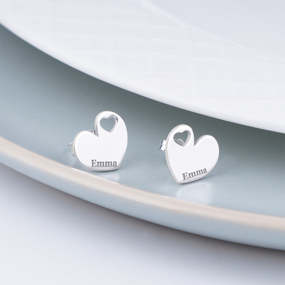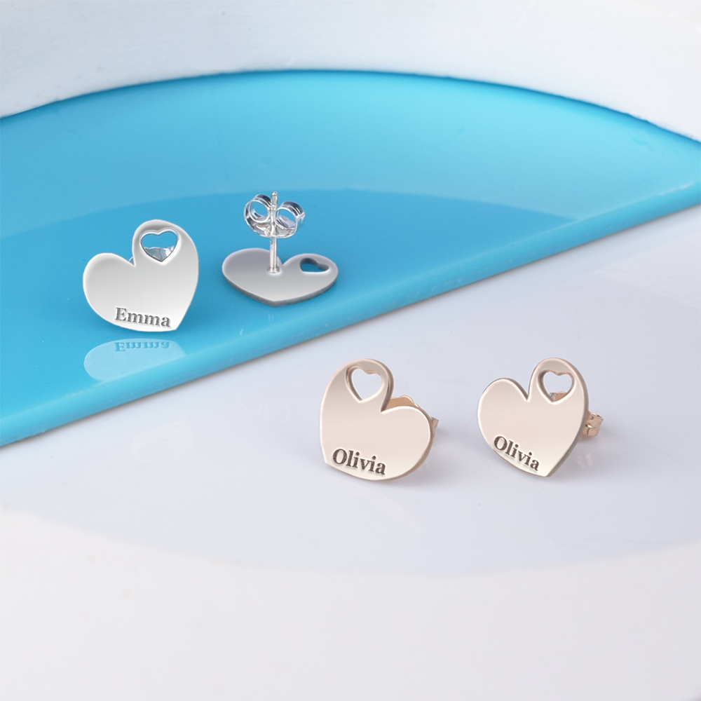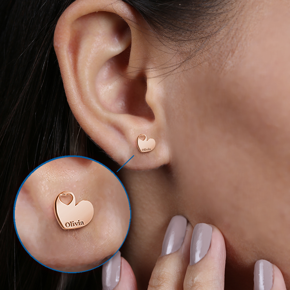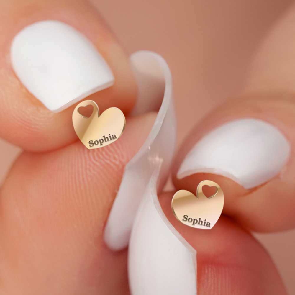 Make a subtle statement with these personalized dainty minimal heart shaped cut-out earrings. Perfect for adding a