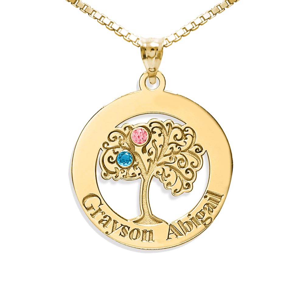 This Personalized Family Tree Cutout Pendant includes an 18 Inch Chain. The Family Tree is intricately engraved and cutout