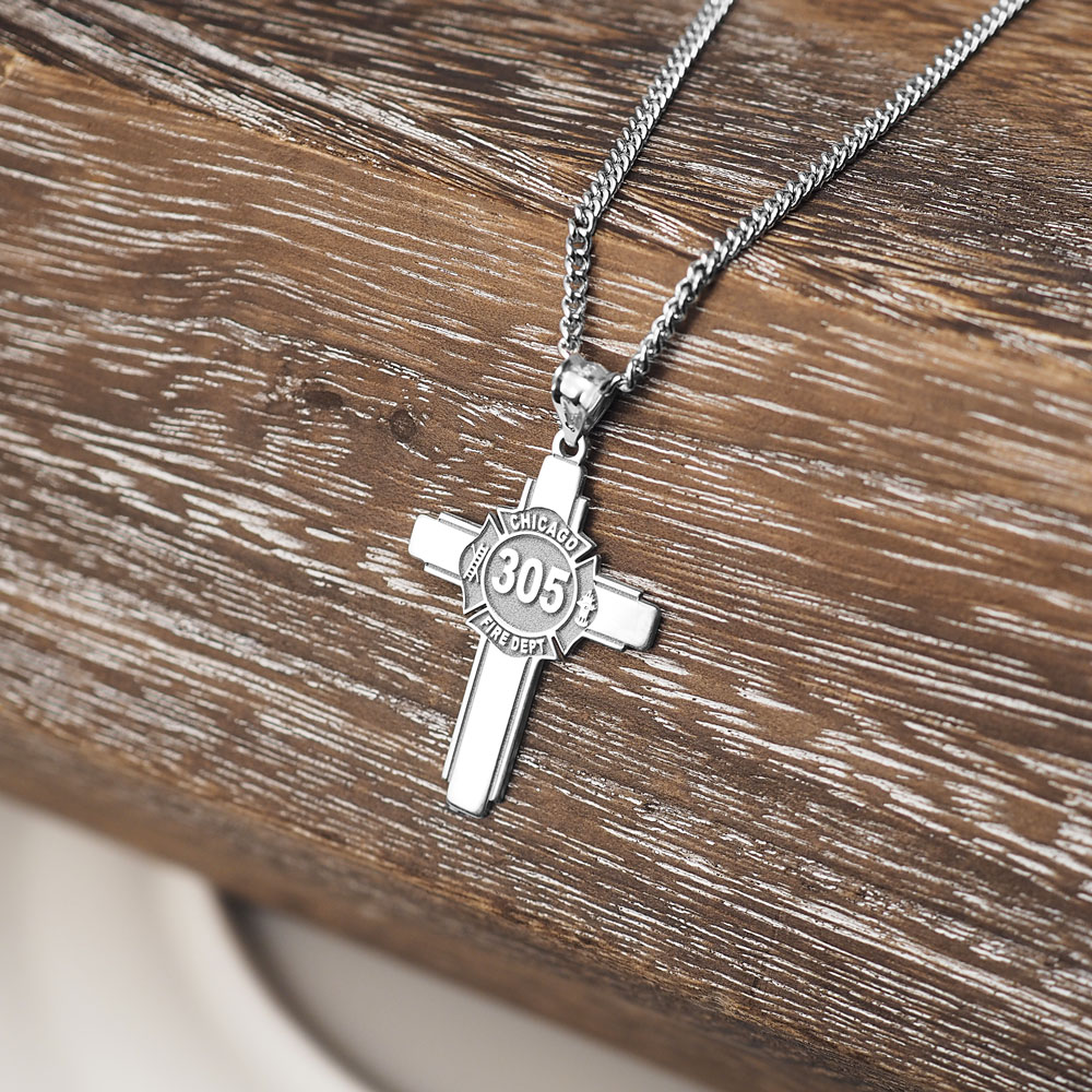 * Available in 14K Yellow Gold, 14K White Gold, & Sterling Silver * Cross Measures 3/4 Inch x 1 1/4 Inches * Specify the Fire Department Initials and Number. * Ships in 1 Day