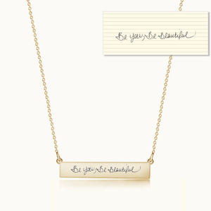Personalized Handwriting Thin Horizontal Bar Pendant w/ 18" Chain