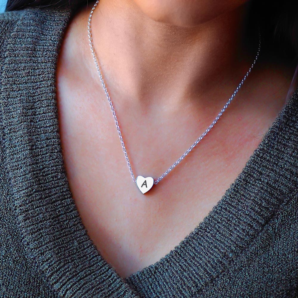 Petite Heart Initial Necklace with 16" Rolo Chain