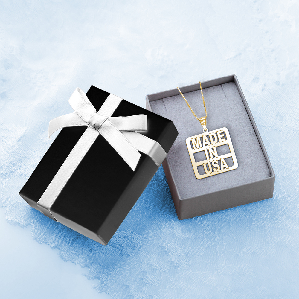 Personalize this pendant with any state, country, city that you would like. For Example, Made in New York.