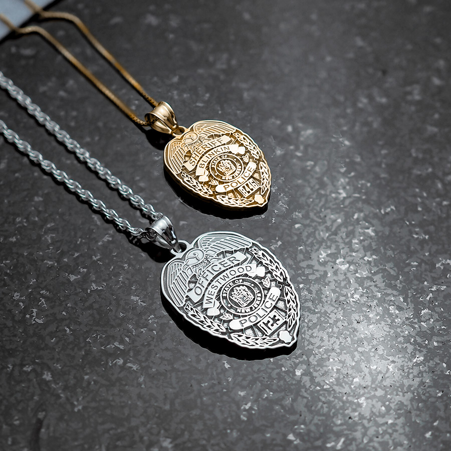 This authentic looking badge, which is made in our New York City Factory, is available in 14K Yellow Gold, 14K White Gold, Premium Gold Plated, and Solid Sterling Silver