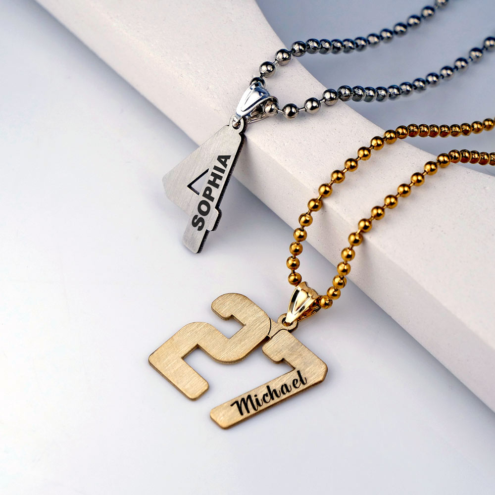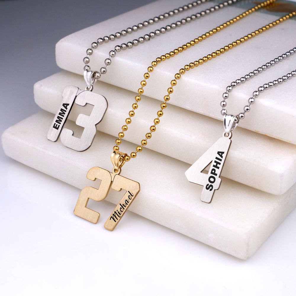 Introducing our exquisite Personalized Number Pendant with Black Enamel Name! This stunning pendant is a perfect blend of style and personalization. Crafted with love and attention to detail, it features a sleek design with a customizable number and your name in striking black enamel. Whether it's a special birthday, anniversary, or just a gesture of self- expression, our pendant is perfect for adding a touch of uniqueness to your everyday look. Treat yourself or surprise a loved one with this meaningful piece that will surely become a treasured keepsake!