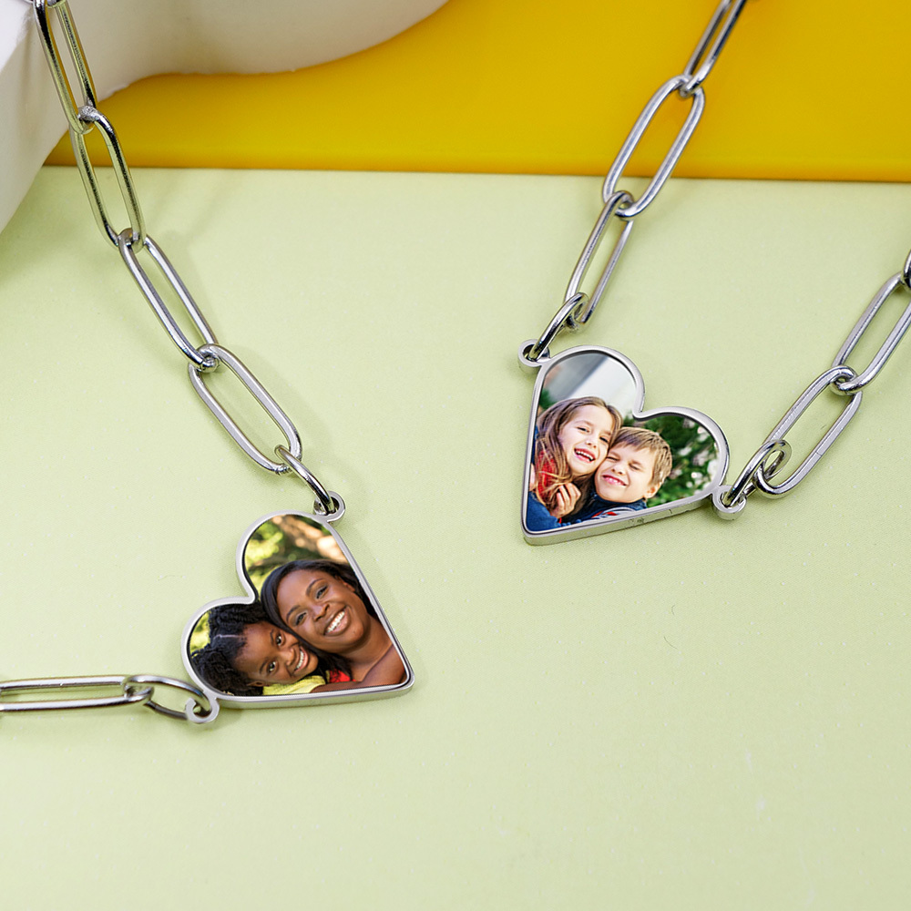 Capture moments close to your heart with our Personalized Photo Heart Necklace. This exquisite piece features a cherished photo engraved in a heart-shaped pendant, creating a timeless keepsake. Paired with a trendy paperclip chain, it's a perfect blend of sentiment and style, making it a meaningful addition to your jewelry collection.