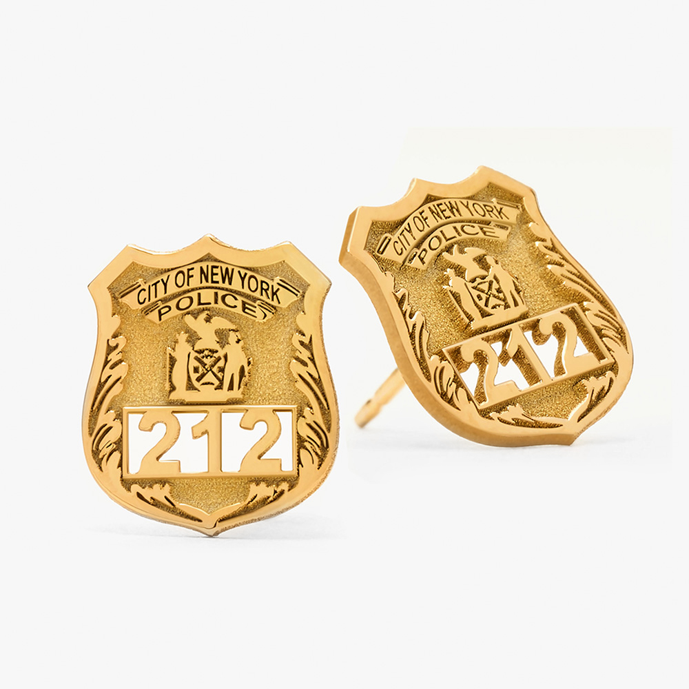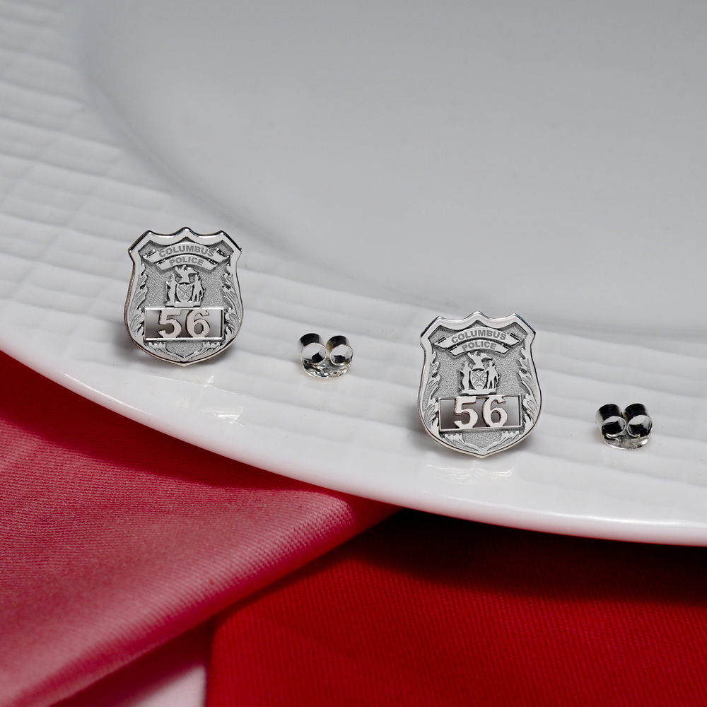 This pair of police badge earrings is available in Solid .925 Sterling Silver, Gold Plated, Rose Gold Plated or Solid 14k Gold. Each earring measures 15 mm tall which is the perfect size for any ear.