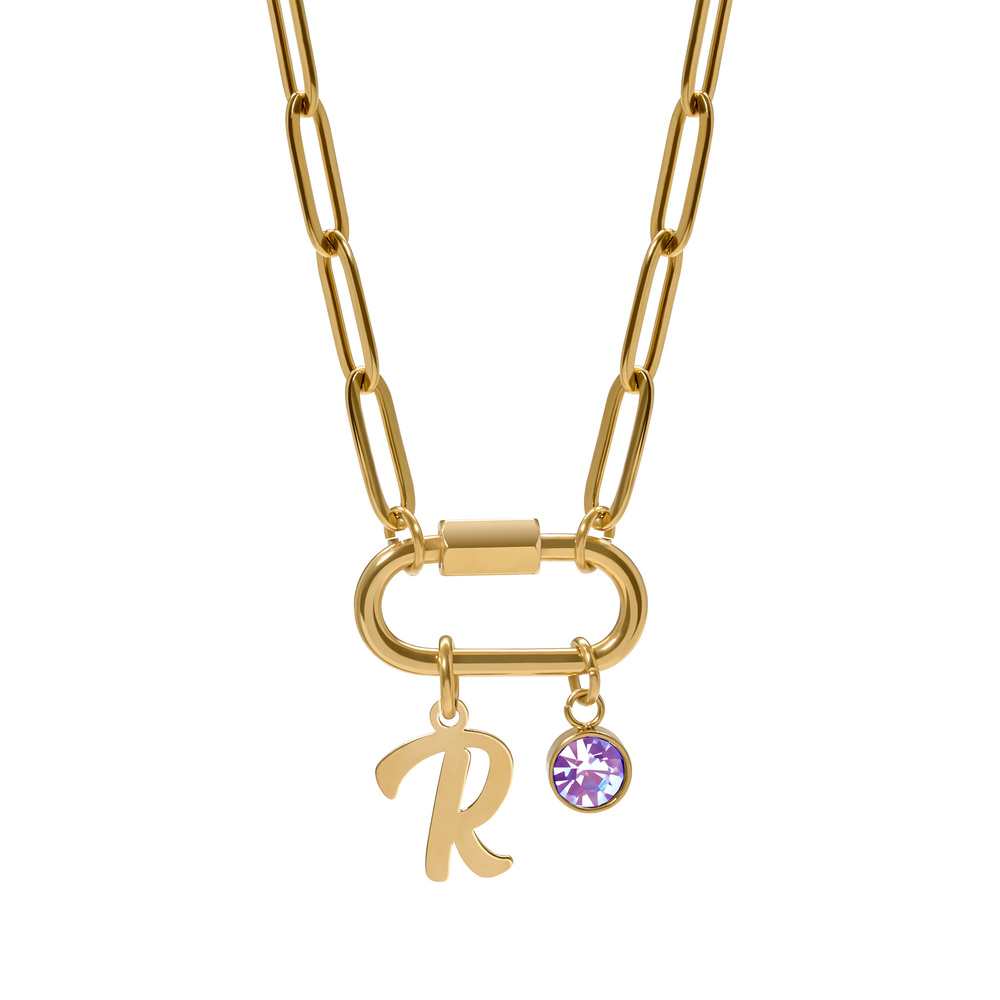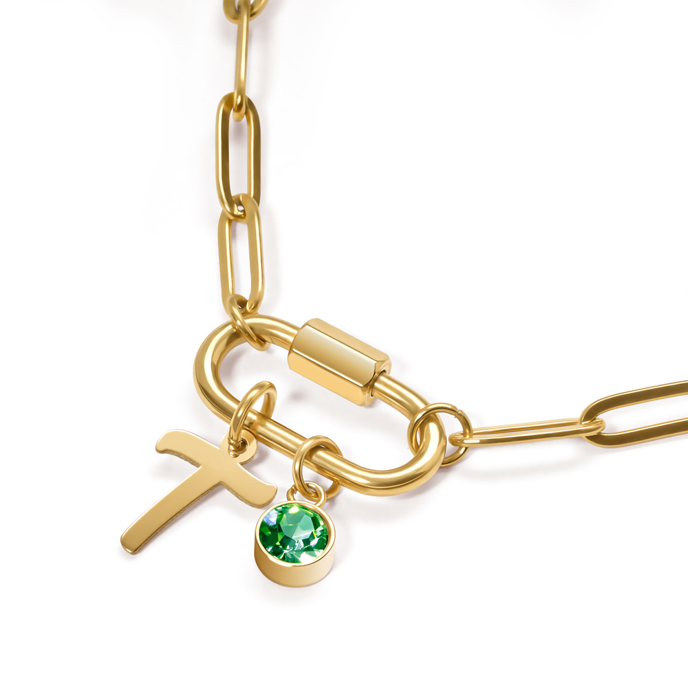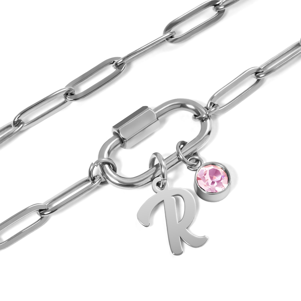 Personalized Script Initial & Birthstone on Paperclip Chain