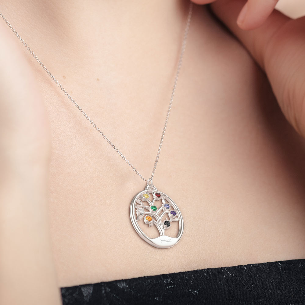 New Personalized Surname Family Tree Pendant can hold up to 15 birthstones.