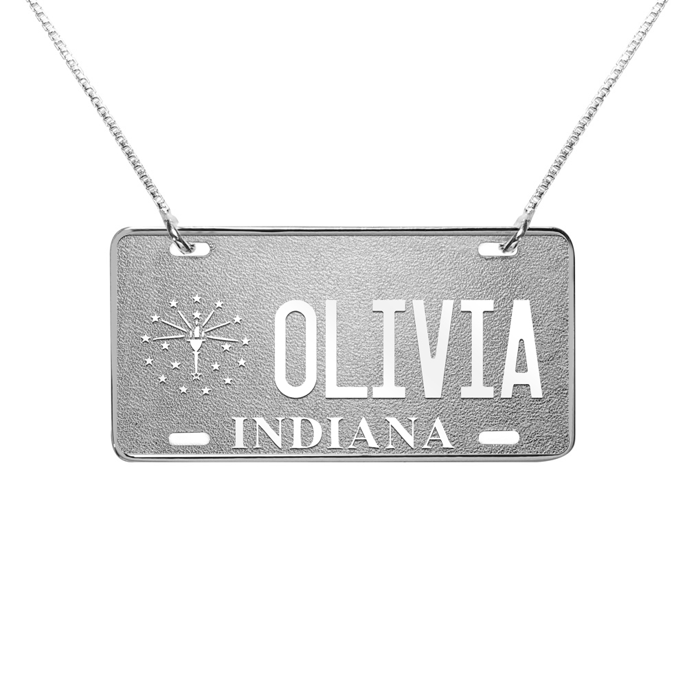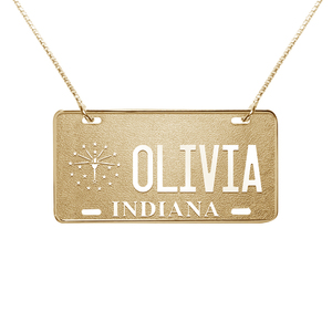 Make a statement with our Personalized Vanity License Plate Pendant! This fun and trendy necklace features a custom license plate pendant with your unique word or message. Choose from all states to create a special piece that represents where you're from or where you've been. It's a great way to show off your personality and style in a personalized way.