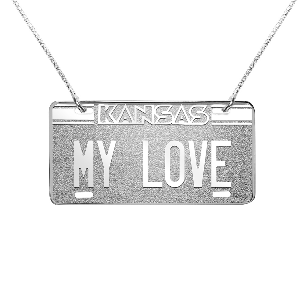Make a statement with our Personalized Vanity License Plate Pendant! This fun and trendy necklace features a custom license plate pendant with your unique word or message. Choose from all states to create a special piece that represents where you're from or where you've been. It's a great way to show off your personality and style in a personalized way.