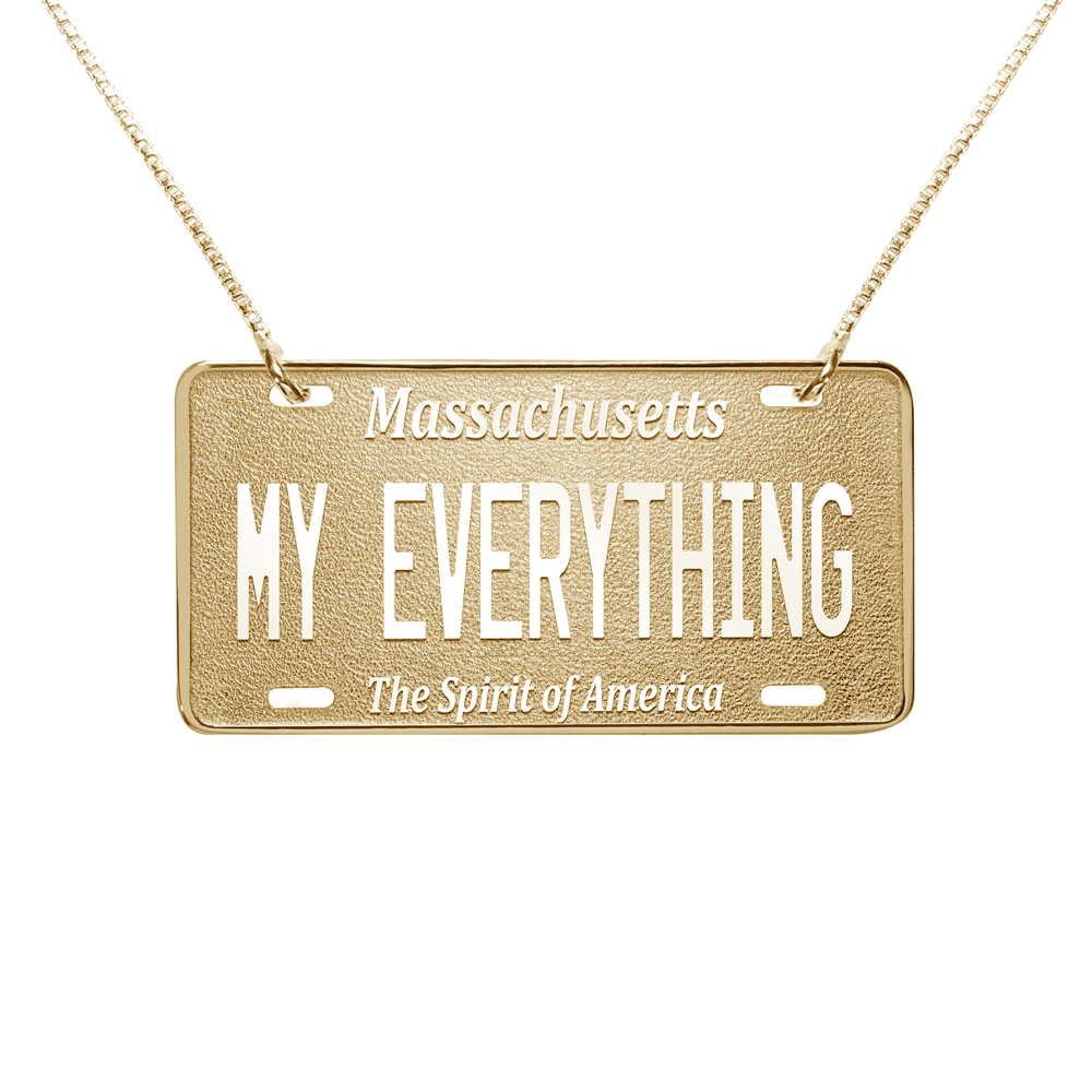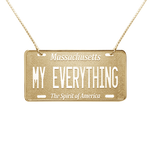 Make a statement with our Personalized Vanity License Plate Pendant! This fun and trendy necklace features a custom license plate pendant with your unique word or message. Choose from all states to create a special piece that represents where you're from or where you've been. It's a great way to show off your personality and style in a personalized way.