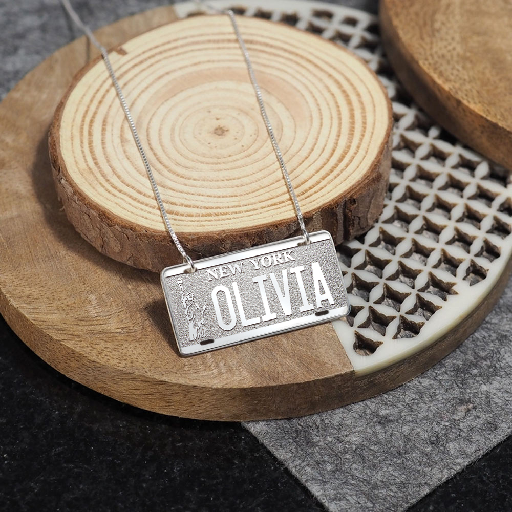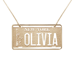 Make a statement with our Personalized Vanity License Plate Pendant! This fun and trendy necklace features a custom license plate pendant with your unique word or message. Choose from all states to create a special piece that represents where you're from or where you've been. It's a great way to show off your personality and style in a personalized way.