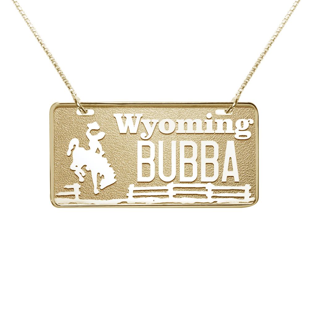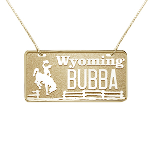 Make a statement with our Personalized Vanity License Plate Pendant! This fun and trendy necklace features a custom license plate pendant with your unique word or message. Choose from all states to create a special piece that represents where you're from or where you've been. It's a great way to show off your personality and style in a personalized way.