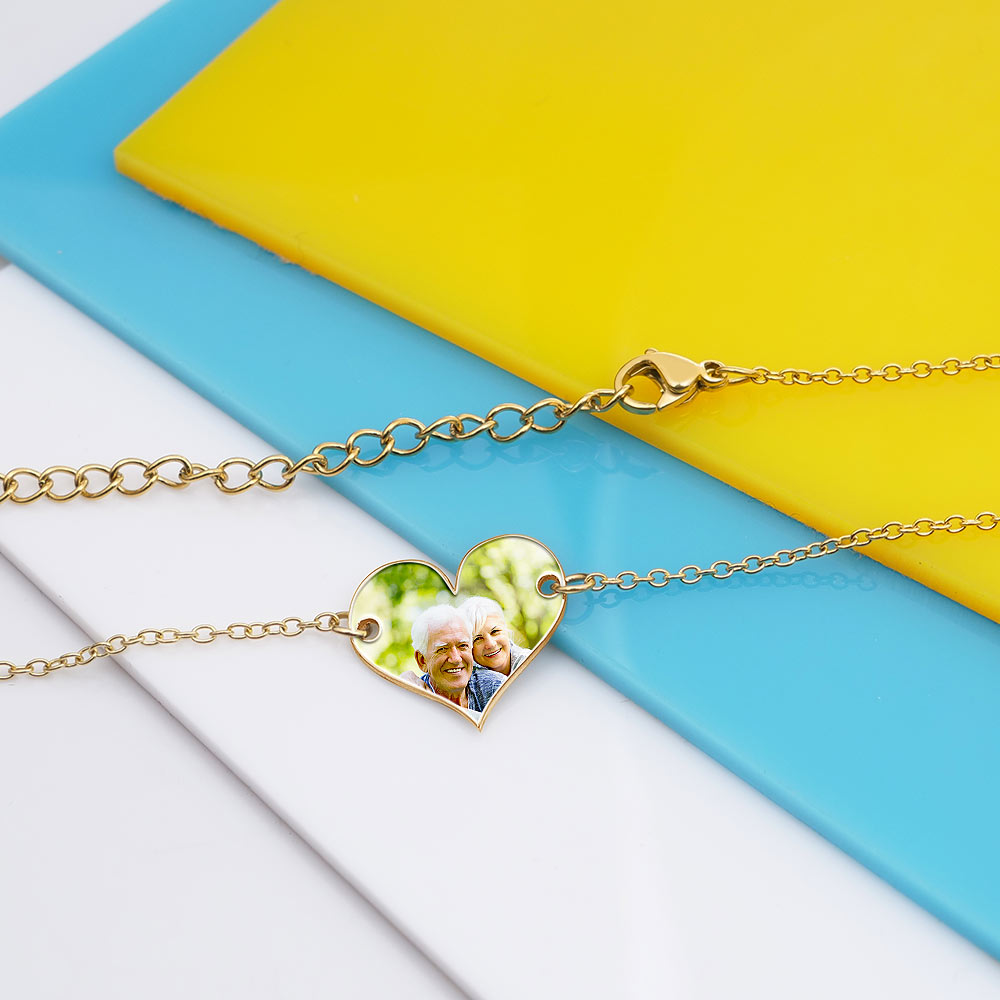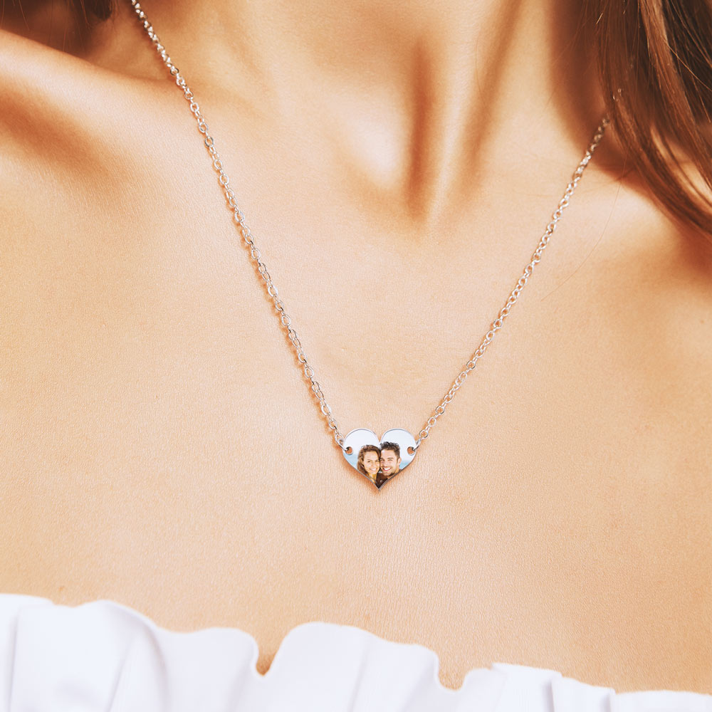 Embrace love in the most fashionable way with our Petite Heart Shaped Photo Pendant. Set on a dainty necklace, this heart-shaped pendant is designed to hold a special photo of your choice, enabling you to carry your loved ones close to your heart wherever you go. Its delicate design exudes a charming elegance that can enhance any outfit, making it a perfect piece for daily wear or special occasions.