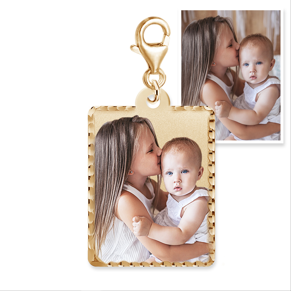 Your photo in full color permanently lasered onto your charm. This process being the most detailed. A protective jewelry enamel is added to every "color laser" pendant to ensure that every day your charm will look as beautiful as the day you took it out of the box.