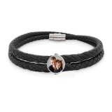 Photo Engraved Black Leather Rope Bracelet w/ Round Charm