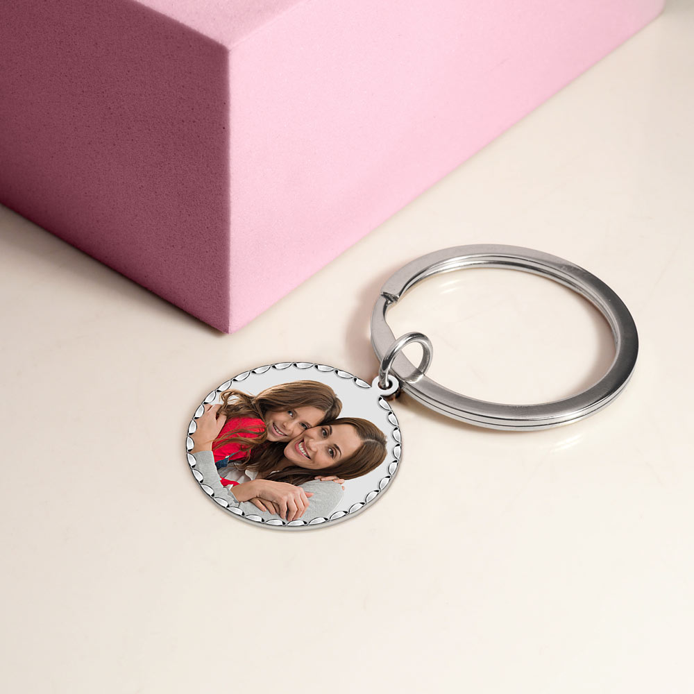 Key Chain, Perfect gift for him or her. The small round key chain photo portion is the size of a quarter (1 inch) and the large round key chain is the size of a Half Dollar. (1 1/4 Inch) Photo Color Laser Or Photo Laser Engraving is scratch and water resistant and included in the price. How will you send your photos: Upload right through the website, E-mail, or Mail in. Click "Customize & Add to Cart" button to choose how would you like to send your photos