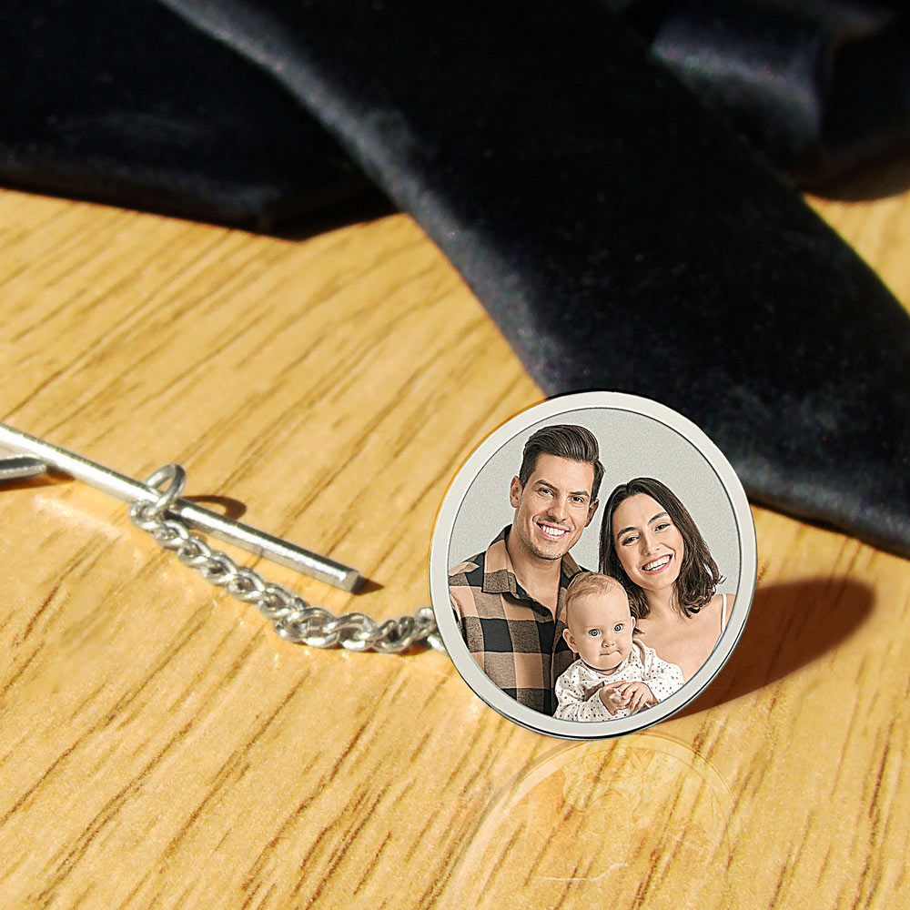 Photo Engraved Tie Tac, the perfect gift for the man who has it all. Available in 10K or14K Solid Yellow Gold & White Gold, or Sterling Silver. Picture portion is approximately 2/3 Inch x 2/3 Inches (size of a dime). Photo Color Laser Or Photo Laser Engraving is scratch and water resistant. How will you send your photos: Upload right through the website, E-mail, or Mail in. Click "Customize & Add to Cart" button to choose how would you like to send your photos