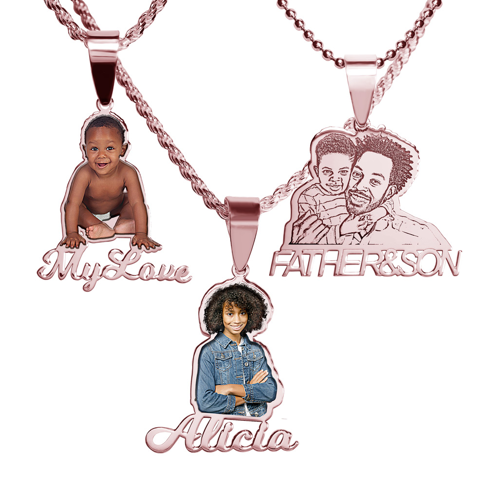 A:  Color Laser: Your photo in full color permanently lasered onto your charm. This process being the most detailed. We´ve had customers say, "My pendant actually looks better than the photo." A protective jewelry enamel is added to every "color laser" pendant to ensure that every day your charm will look as beautiful as the day you took it out of the box.