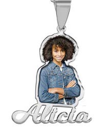 Your photo in full color permanently lasered onto your charm. This process being the most detailed. A protective jewelry enamel is added to every "color laser" pendant to ensure that every day your charm will look as beautiful as the day you took it out of the box.