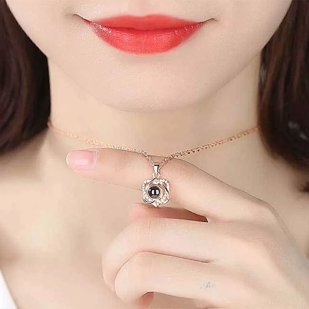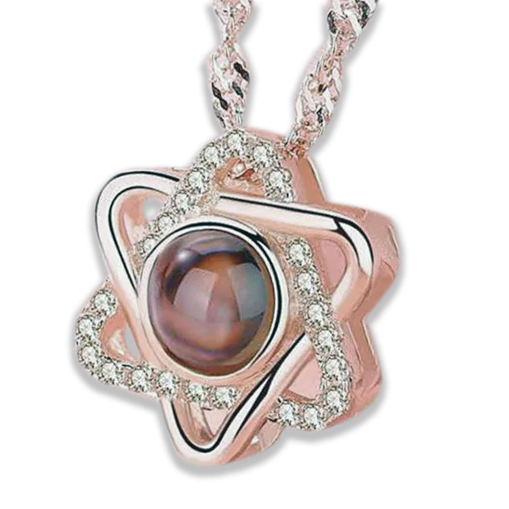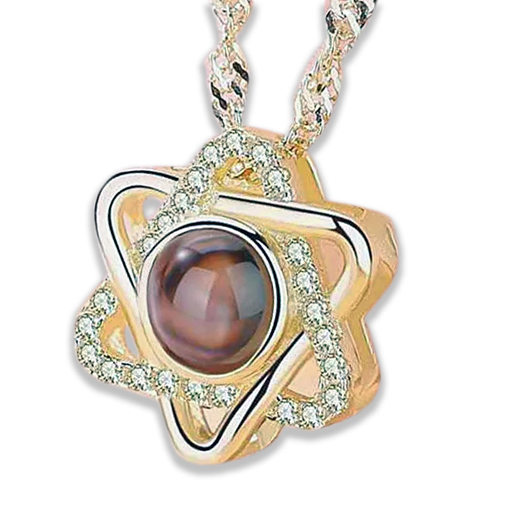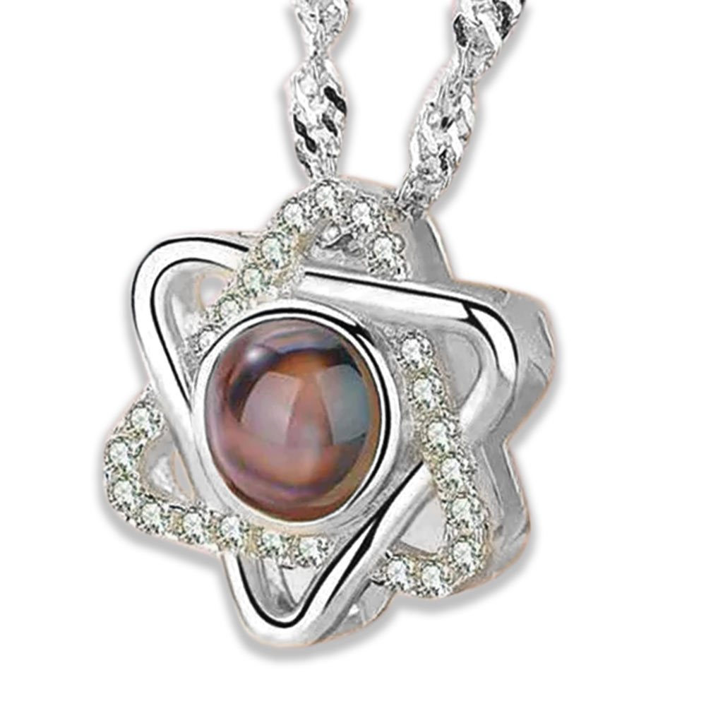 This beautiful Photo Projection CZ Star Necklace is the perfect gift for Mom, Sister, Aunt, or your Best Friend. With the looks of a stylish, trending pendant, there's lies a hidden photo within the center stone of the pendant.