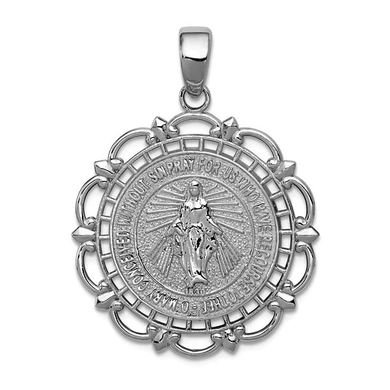 Polished Miraculous Medal With Cut-Out Scalloped Frame