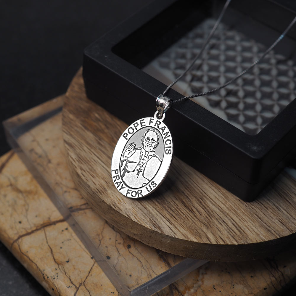 Pope Francis Religious Medal Oval Laser Engraved "EXCLUSIVE"