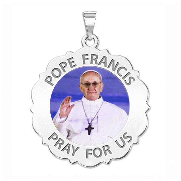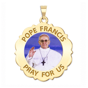 Pope Francis Scalloped Round Religious Medal " Color EXCLUSIVE"