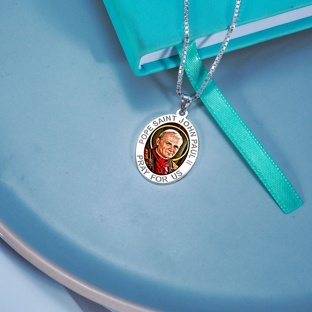 Pope Saint John Paul II Oval Religious Color Medal "EXCLUSIVE"