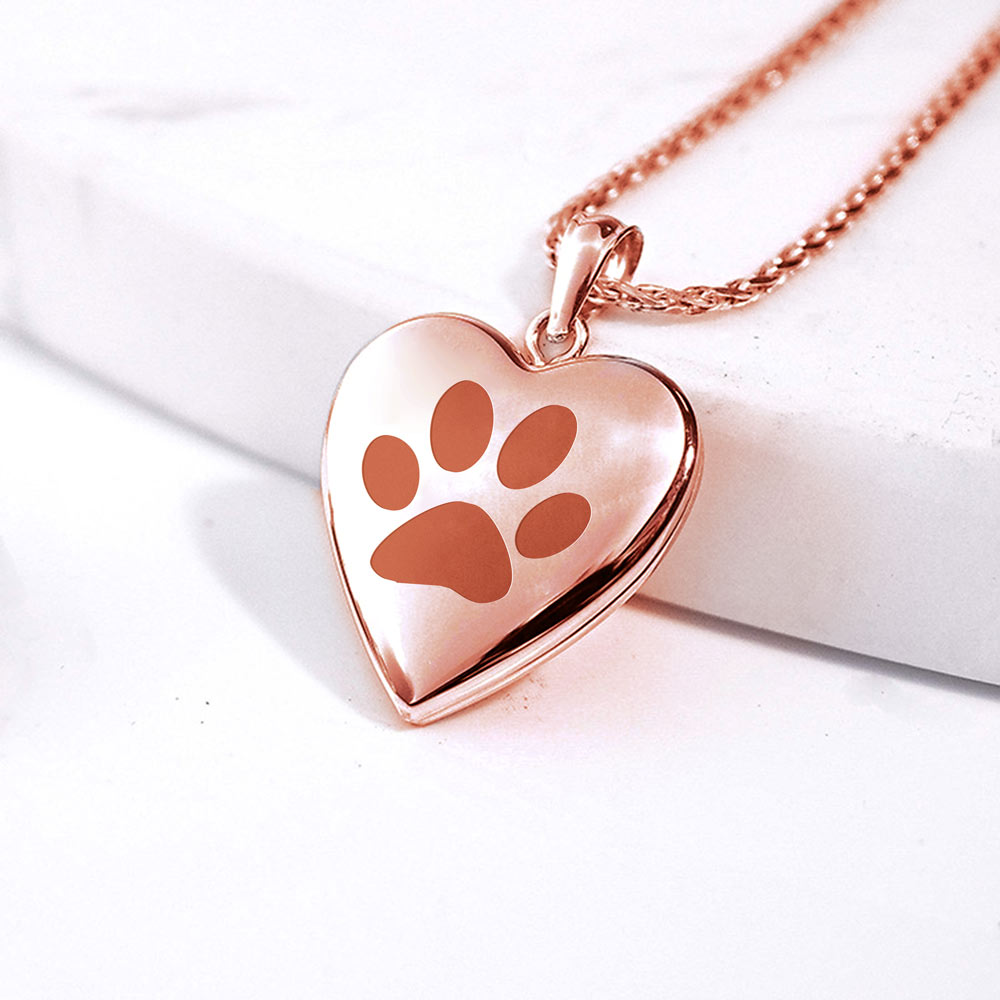 Rose Gold Plated "Dog Paw Print" Heart Photo Locket