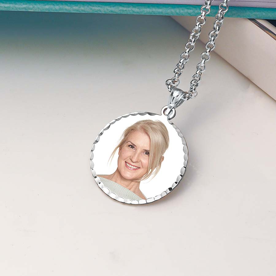 Memorial Round w/ Diamond Cut Edge Photo Engraved Pendant