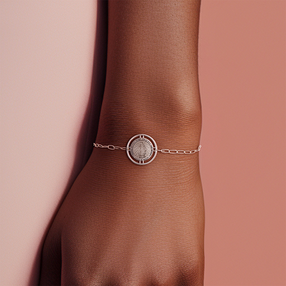 Round Miraculous Medal with Open Border Paperclip Bracelet