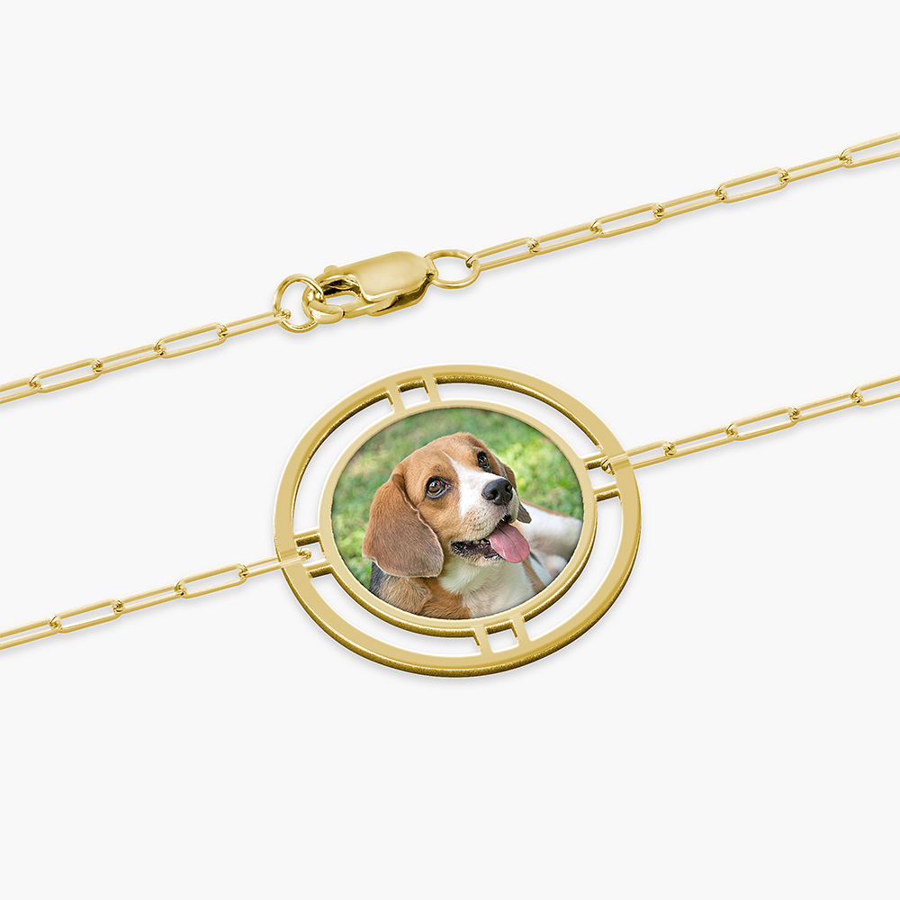 "I just recieved my order of two necklaces with my cat Gwenie's picture engraved in color and I can't begin to express how pleased I am with the attention to detail and care this company took to crop, center, and print her picture so perfectly on each necklace. My husband and I had to put our 19-yesr old cat down last week and these necklaces with her picture, mean so much to us. Thank you Pictures on Gold for creating such beautiful pieces of jewelry for us, we will cherish them forever."