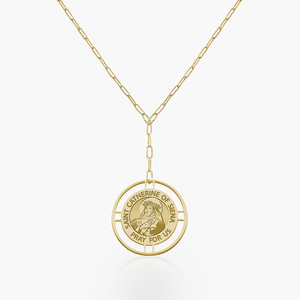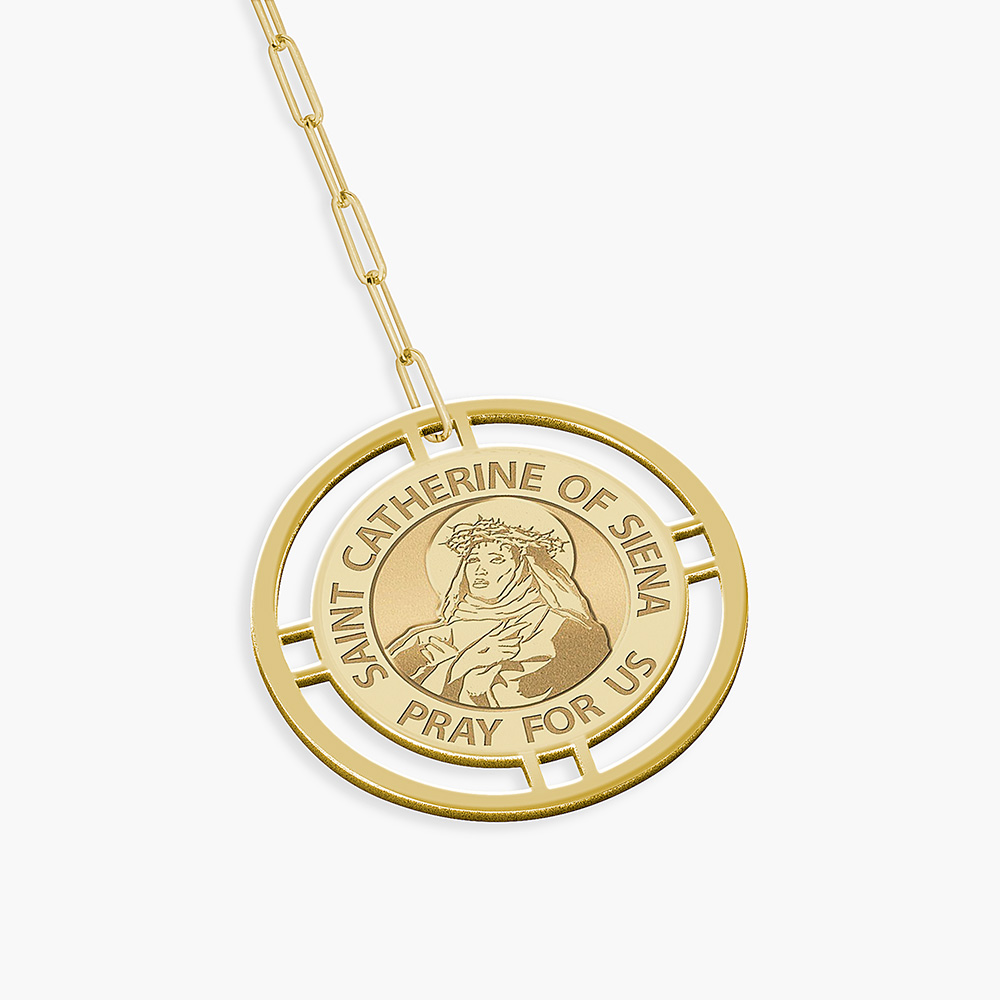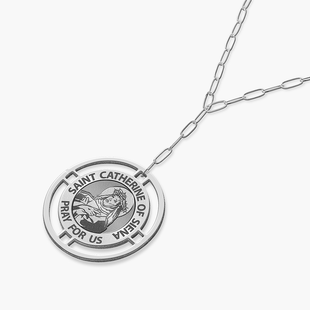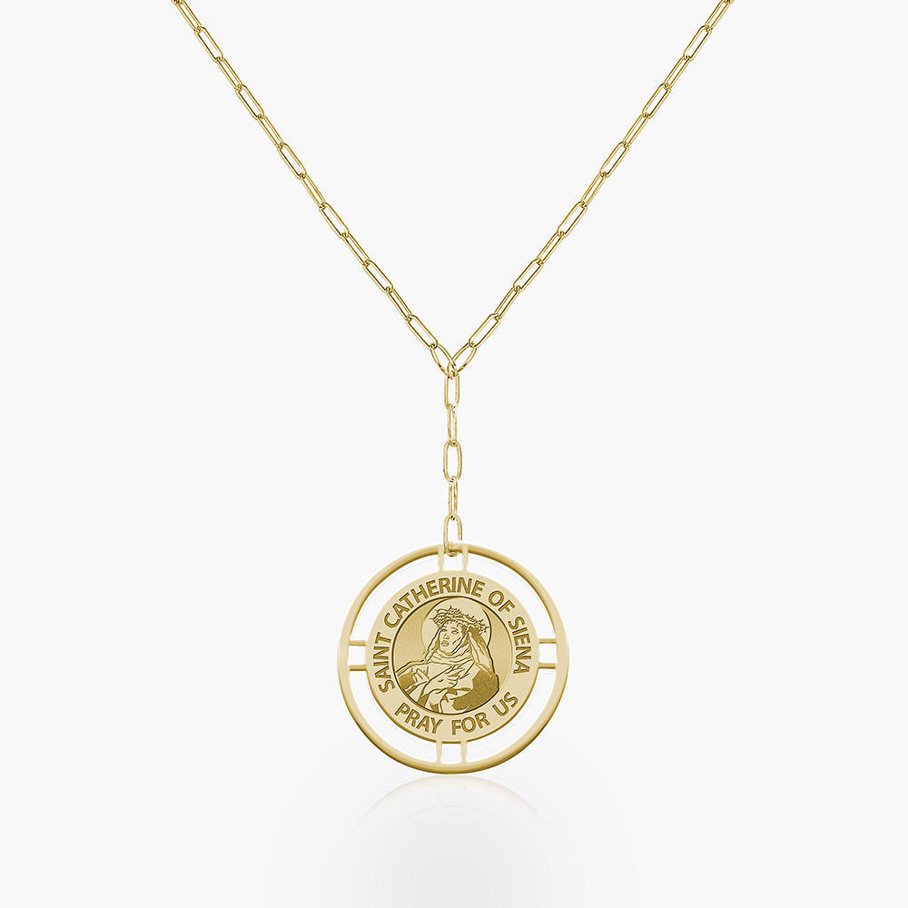 Round Saint Catherine of Siena Medal with Open Border Necklace