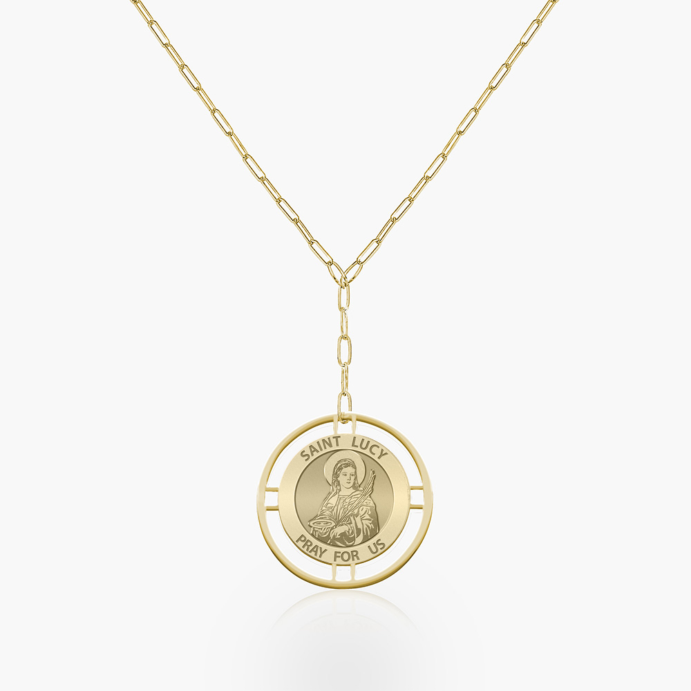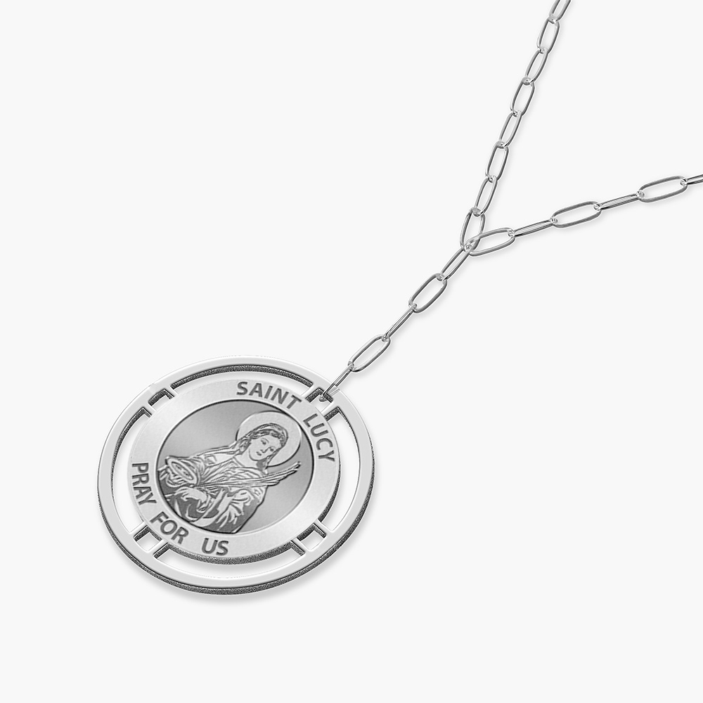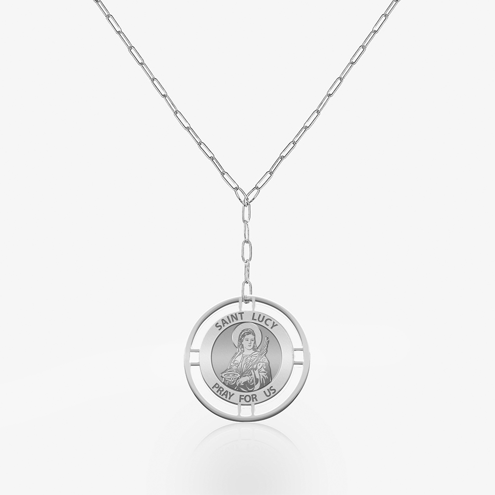 Round Saint Lucy Medal with Open Border Necklace