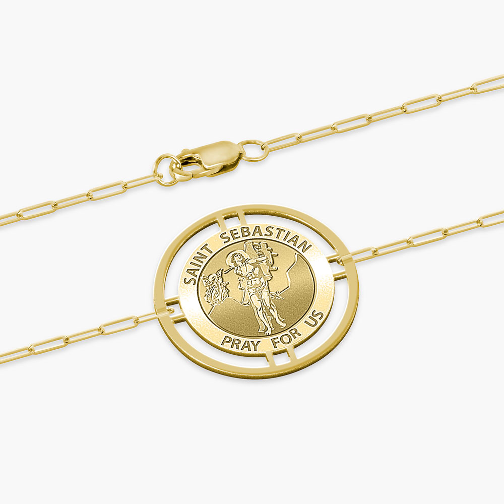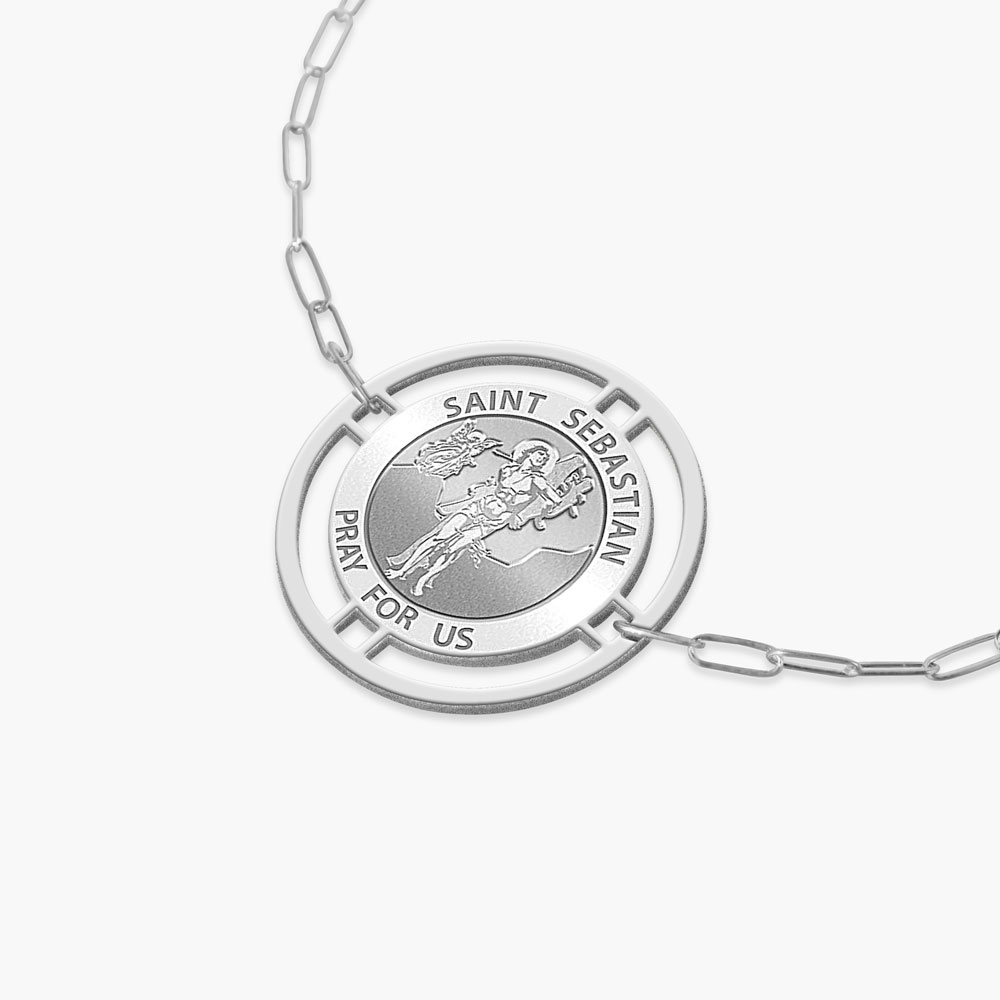 Round Saint Sebastian Medal with Open Border Paperclip Bracelet