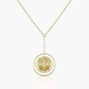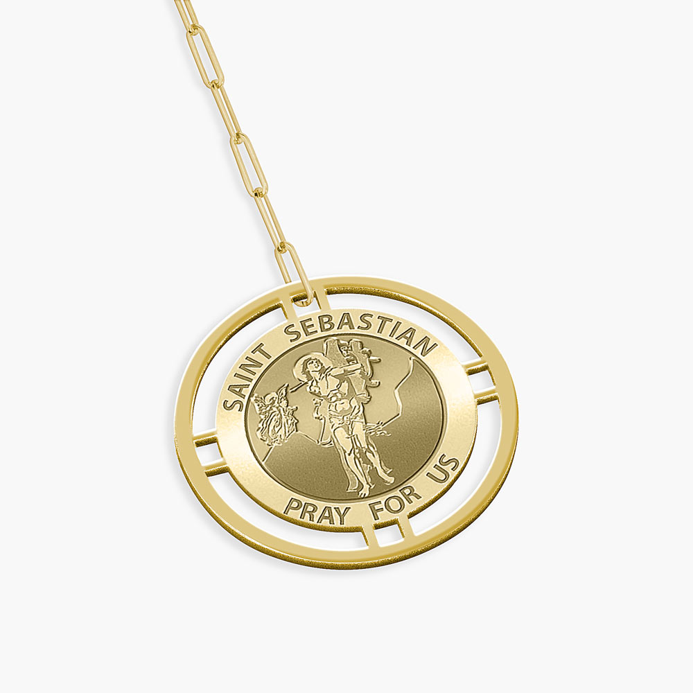 Embrace the beauty of individuality with the Round Saint Pendant with Open Border Paperclip Necklace, a piece that carries a personal story and adds a touch of elegance to your jewelry collection. At the heart of the Necklace is a round pendant featuring an intricate religious design, symbolizing uniqueness and personal connection. The open border around the saint adds a touch of sophistication and highlights the detailed pattern beautifully. Expertly crafted from premium materials, this Necklace promises both durability and a luxurious feel. The metal is meticulously polished to a radiant shine, ensuring a lasting, elegant appearance. This Saint pendant can be personalized, allowing you to immortalize a loved one's faith by adding a deeply personal and sentimental message to the piece. Ideal for both everyday wear and special occasions, this necklace seamlessly transitions from casual to formal settings. Its versatile design makes it a timeless accessory that enhances any outfit. Elegantly packaged in a stylish jewelry box, this necklace makes a heartfelt gift for birthdays, anniversaries, holy sacraments, or any special occasion, celebrating personal connections and cherished memories.