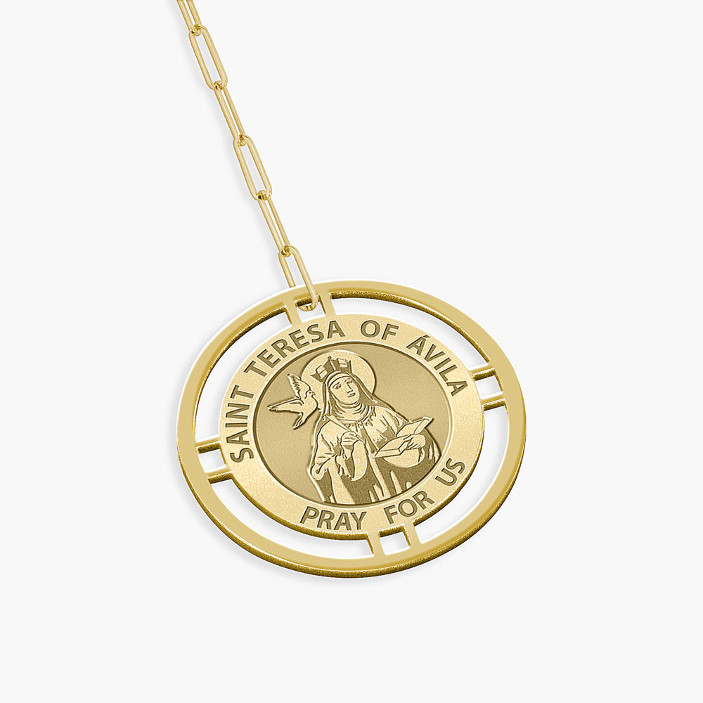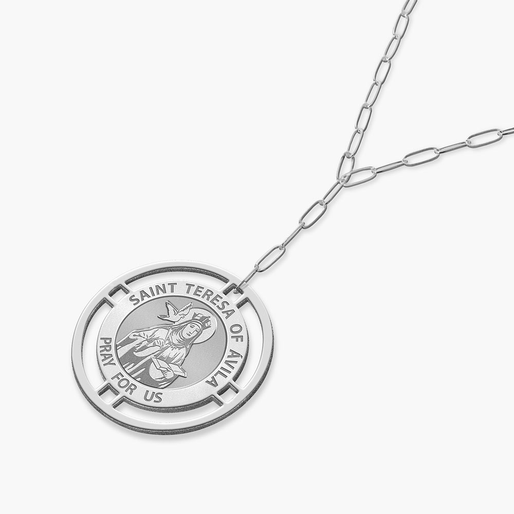 Round Saint Terese of Avila Medal with Open Border Necklace