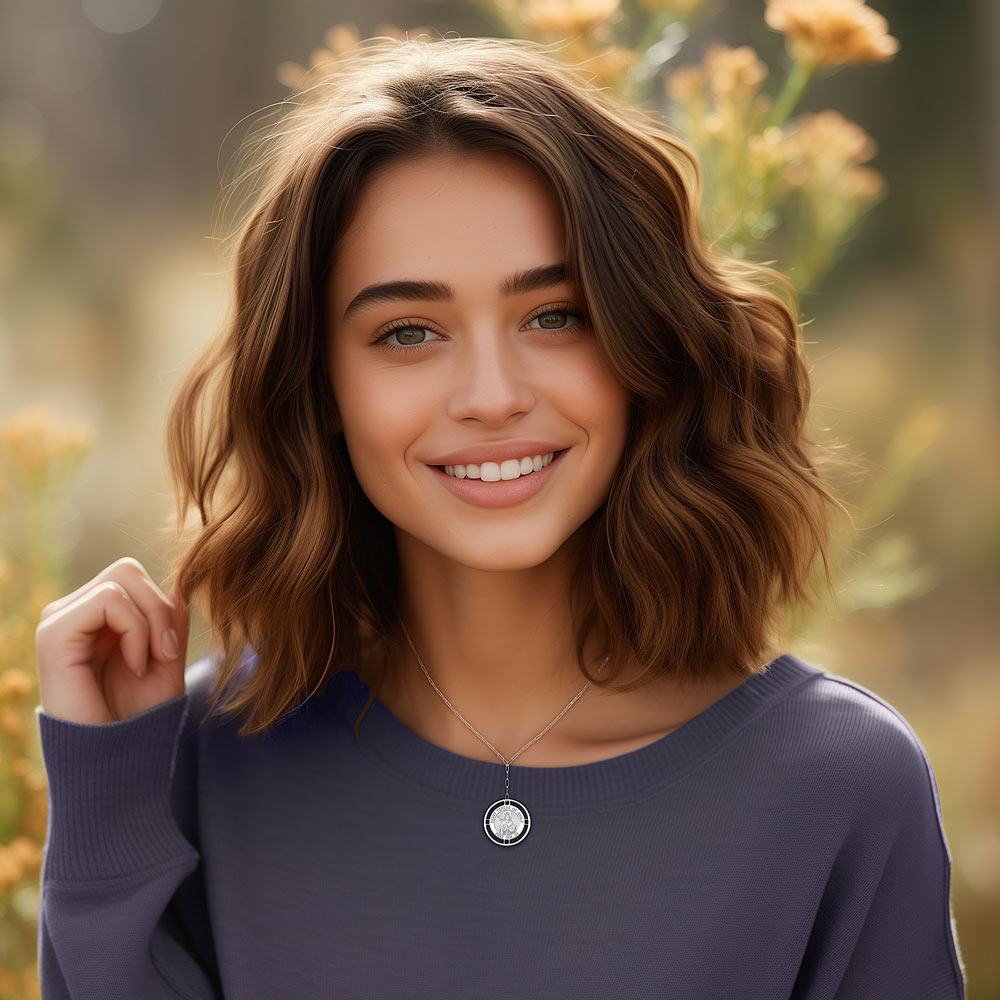 Embrace the beauty of individuality with the Round Saint Pendant with Open Border Paperclip Necklace, a piece that carries a personal story and adds a touch of elegance to your jewelry collection. At the heart of the Necklace is a round pendant featuring an intricate religious design, symbolizing uniqueness and personal connection. The open border around the saint adds a touch of sophistication and highlights the detailed pattern beautifully. Expertly crafted from premium materials, this Necklace promises both durability and a luxurious feel. The metal is meticulously polished to a radiant shine, ensuring a lasting, elegant appearance. This Saint pendant can be personalized, allowing you to immortalize a loved one's faith by adding a deeply personal and sentimental message to the piece. Ideal for both everyday wear and special occasions, this necklace seamlessly transitions from casual to formal settings. Its versatile design makes it a timeless accessory that enhances any outfit. Elegantly packaged in a stylish jewelry box, this necklace makes a heartfelt gift for birthdays, anniversaries, holy sacraments, or any special occasion, celebrating personal connections and cherished memories.