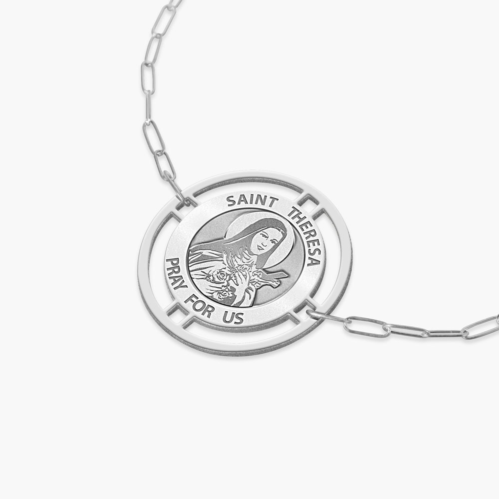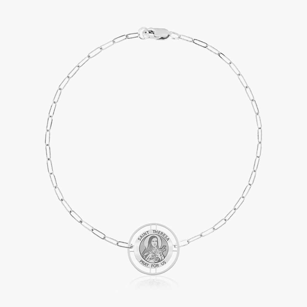 Round Saint Theresa of Lisieux with Open Border Paperclip Bracelet