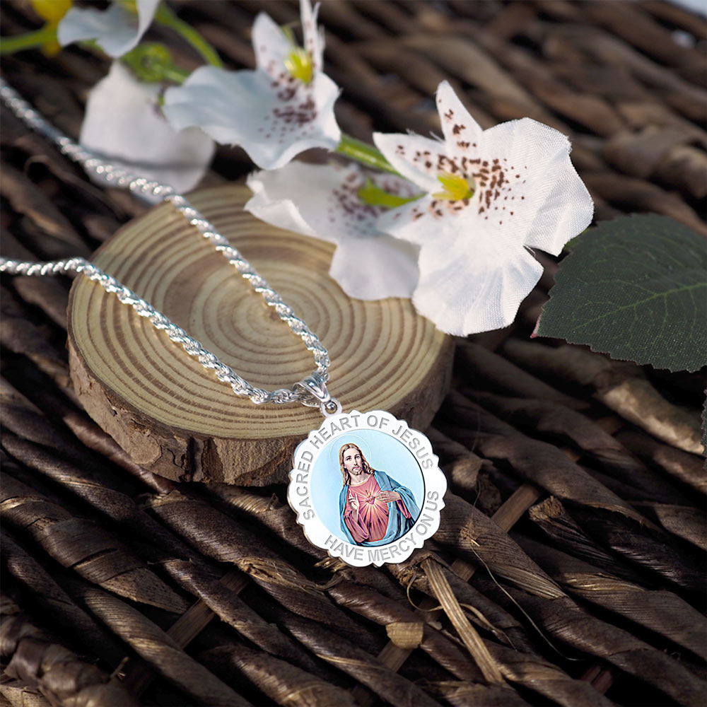Sacred Heart of Jesus Scalloped Religious Medal "Color EXCLUSIVE"