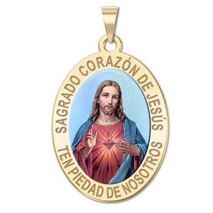 Sagrado Corazon de Jesus Medalla religiosa oval en color