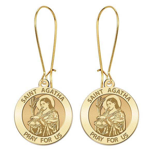 Saint Agatha of Sicily (d. 251) is a Christian saint. Her memorial is on 5 February. Agatha was born at Catania and she was martyred in approximately AD 250. She is the patron saint of Catania. She is one of seven women, excluding the Blessed Virgin Mary, commemorated by name in the Canon of the Mass. According to variations of her legend, having rejected the amorous advances of a Roman prefect, she was persecuted by him for her Christian faith. Among the tortures she underwent was the cutting off of her breasts. She is therefore often depicted iconographically carrying her excised breasts on a platter. The shape of her amputated breasts, especially as depicted in artistic renderings, gave rise to her attribution as the patron saint of bell-founders and as the patron saint of bakers. More recently, she has been venerated as patron saint of breast cancer patients. Her scorned admirer eventually sentenced her to death by being burnt at the stake. However, she was saved from this fate by a mysterious earthquake. She later died in prison. She is considered as patron saint of Malta since her intercession is reported to have saved Malta from Turkish invasion in 1551. She is also patron saint of Breast Cancer, Breast Disorders, and Rape Victims. The memory of Agatha is upheld in particular by the Military Order of the Collar of Saint Agatha of Patern. *Price Per Pair * Each Earring is 15mm / 1/2" inch (smaller than a dime)